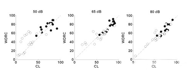 <span style="font-size:16px;"> 重度聽力損失是500Hz、1000Hz、2000Hz和4000Hz平均聽閾在61dB HL和80dB HL之間的聽力損失。重度聽損患者更趨向于:</span></p><p><span style="font-size:16px;"> 1、 聽力損失時間較久;</span></p><p><span style="font-size:16px;"> 2、 有助聽器佩戴史;</span></p><p><span style="font-size:16px;"> 3、 言語分辨率較低;</span></p><p><span style="font-size:16px;"> 4、 噪音環境中交流困難。</span></p><p><span style="font-size:16px;"> (一)重度聽力損失的特點</span></p><p><span style="font-size:16px;"> 60dB HL是單純外毛細胞損傷和內外毛細胞共同損傷的分界點,內毛細胞受損預示著重度聽力損失,這類患者的頻率選擇能力降低,在相關頻率范圍內難以分辨兩種聲音。這是噪聲環境下交流困難的主要原因。</span></p><p><span style="font-size:16px;"> 簡單來說,頻率選擇能力越低,自身降噪能力越差,噪聲下識別信號的能力也就越差。</span></p><p><span style="font-size:16px;"> (二)選擇合適的放大策略</span></p><p><span style="font-size:16px;"> 反饋抑制:這項技術在傳統方法的基礎上有更好的減少嘯叫的效果。</span></p><p><span style="font-size:16px;"> 指向性麥克風:有指向性功能的助聽器可以明顯提高信噪比(SNR)。現在自適應指向性麥克風廣泛地應用于大功率耳背機中。</span></p><p><span style="font-size:16px;"> 對于噪聲下言語交流困難的重度聽力損失患者,選配帶有指向性麥克風的助聽器效果顯著。</span></p><p><span style="font-size:16px;"> 聽力學家對重度聽損人士的指向性麥克風做過獲益度測試,發現平均言語識別能力提升了14%。</span></p><p><span style="font-size:16px;"> 重度聽損患者使用指向性功能時必須保證一定低頻增益,否則他們會感覺聲音不夠洪亮。</span></p><p><span style="font-size:16px;"> 寬動態范圍壓縮線路(WDRC):</span></p><p><span style="font-size:16px;"> 如下圖,白點是重度聽力損失患者的輔音識別得分,黑點是輕度至中度聽損患者的輔音識別得分;每位受試者佩戴四通道的耳背機,驗配采用NAL公式;測試言語聲強度分別為50dB SPL、65dB SPL和80dB SPL;比較WDRC和線性輸出壓縮限制(CL)兩種線路的得分。</span></p><center><span style="font-size:16px;"><img alt="" src="/upfiles/201809170201049787.png" width="600" height="240" /></span></center><p></p><p><span style="font-size:16px;"> 等分位于對角線附近代表兩種處理方式效果相似,得分位于對角線上方表示WDRC線路效果更好,而下方則表示CL線路效果更好。</span></p><p><span style="font-size:16px;"> 對重度聽損患者來說,輸入輕聲和中等聲時WDRC線路比CL線路效果更好;輸入響聲時兩種線路的區別并不大。所以使用WDRC線路可以獲得比CL線路更高的言語識別率。</span></p><p><span style="font-size:16px;"> 壓縮速度:壓縮越深可聽度越高,因為患者可以聽到更寬的聲音響度范圍。</span></p><p><span style="font-size:16px;"> 快反應壓縮(起效和釋放時間很短)可以降低元音(響度較大)增益并提高輔音(響度較小)增益,從而提高可聽度。</span></p><p><span style="font-size:16px;"> 所以理論上來講,對于重度聽損人士,使用多通道助聽器、低壓縮拐點、高壓縮比、音節壓縮,可以最大程度提高驗配效果。</span></p><p><span style="font-size:16px;"> 但壓縮越深就意味著有聲音失真越大,音節壓縮丟失了重要言語信息,導致輔音分辨不清。若要保留這些信息,則需要慢反應壓縮(起效和釋放時間較長)。</span></p><p><span style="font-size:16px;"> 最好的情況是在提高可聽度的同時還保證信號不失真,但目前很難實現,找到二者的平衡點是最佳的選配方案。</span></p><center><span style="font-size:16px;"><img alt="" src="/upfiles/201809170201141216.png" width="440" height="250" /></span></center><p></p><p><span style="font-size:16px;"> 上圖為一組重度聽力損失患者選配快速和慢速WDRC線路的言語識別率對比。</span></p><p><span style="font-size:16px;"> 在輸入聲級為50和65 dB SPL時,快反應壓縮線路的受試者得分明顯比慢反應壓縮線路的受試者差;在80 dB SPL輸入聲級下則并無明顯差別。</span></p><p><span style="font-size:16px;"> 對輕度和中度聽力損失患者來說,無論何種輸入聲級,兩種壓縮方式的得分都沒有明顯差別(并未在圖中顯示)。</span></p><p><span style="font-size:16px;"> 對極重度聽力損失患者來說,可聽度比其他任何信息都重要,快反應壓縮線路效果比慢反應壓縮線路更好。</span></p><p><span style="font-size:16px;"> 綜上所述,在使用多通道WDRC線路助聽器前提下,一定程度的可聽度是必須的,在這個基礎上要追求最低的失真(最低的壓縮比以及最慢的壓縮),才能達到最好的驗配效果。</span></p><p><span style="font-size:16px;"> 我們經常會遇到重度聽力損失患者,應該找到適合他們的驗配策略并提供心理和生理咨詢。</span></p><p><span style="font-size:16px;"> 助聽器選配的效果受到外周及中樞聽覺系統的能力限制,重度感音神經性聽力損失患者很少能在噪音環境中聽清。</span></p><p><span style="font-size:16px;"> 但是,通過仔細的驗配和回訪調試,我們依然可以取得很好的效果。重度聽力損失患者體現了聽覺系統的復雜性,提醒我們僅僅增加增益對提高患者交流能力是遠遠不夠的。</span></p><p><span style="font-size:16px;"> 更多詳情請登錄www.yskoucai.com</span></p>" />