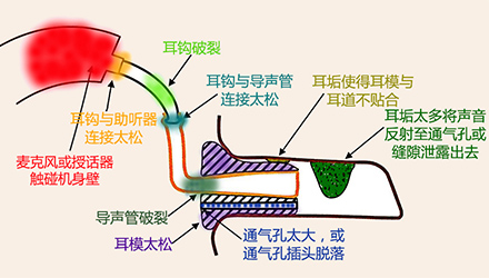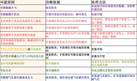 <span style="font-size:16px;"> 嘯叫,一直是引起助聽器使用者不滿的一大原因,也是驗配師在助聽器調試時最為棘手的難題之一。</span></p><p><span style="font-size:16px;"> 通常,嘯叫分內部嘯叫和外部嘯叫。內部嘯叫常由內部零件故障引起,而外部嘯叫則是與助聽器外殼或耳模,助聽器調試等有關。</span></p><p style="text-align: center;"><span style="font-size:16px;"><img src="/upfiles/201810100140556872.jpg" alt="" /><br /></span></p><p><span style="font-size:16px;"> 我們常常說的外部嘯叫是在聲音被麥克風拾取、放大器放大、授話器轉換后,又從各種縫隙(如外殼與耳道的縫隙、通氣孔)中“跑”出來,又“跑”進去,如此反復多次,使得聲音越來越大,產生“吱吱吱”的惱人嘯叫。</span></p><p><span style="font-size:16px;"> 以助聽器的角度來看,shou話器把聲音授給耳朵聽,當用“授”,即授話器。</span></p><p><span style="font-size:16px;"> 接下來將分別針對定制式(ITE/ITC/CIC)和耳背式(BTE)助聽器的嘯叫問題,跟著產生嘯叫的路徑,一一“攻破”嘯叫難題。注意,這里不說助聽器調試,只尋嘯叫路徑,并“堵死”嘯叫“通路”,讓進入助聽器的聲音“不走回頭路”。</span></p><p><span style="font-size:16px;"> 1、ITE/ITC/CIC助聽器</span></p><p><span style="font-size:16px;"> 先來看看ITE/ITC/CIC助聽器可能發生嘯叫的路徑。</span></p><p><span style="font-size:16px;"> 圖1里是一個定制式助聽器佩戴于外耳道內的示意圖,各種顏色的字和相應顏色的標記展示了發生嘯叫的各種情況。</span></p><center><span style="font-size:16px;"><img alt="" src="/upfiles/201810100142273990.png" width="440" height="250" /></span></center><p></p><p style="text-align: center;"><span style="font-size:16px;">圖1:ITE/ITC/CIC助聽器發生嘯叫的路徑一覽</span></p><p style="text-align: left;"><span style="font-size:16px;"> 例如,紅色表示“麥克風管子脫落”,這屬于助聽器內部零件脫落、故障,為內部嘯叫。</span></p><p><span style="font-size:16px;"> 橙色表示“外殼佩戴太松”,這屬于外殼不密封的聲音泄露,為外部嘯叫。</span></p><p><span style="font-size:16px;"> 那如何檢查出是這些原因,并對問題進行相應處理呢?請對照表1中的“診斷依據”和“處理方法”查看。</span></p><center><span style="font-size:16px;"><img alt="" src="/upfiles/201810100142337254.png" width="520" height="250" /></span></center><p></p><p style="text-align: center;"><span style="font-size:16px;">表1:ITE/ITC/CIC助聽器產生嘯叫的可能原因及對應的診斷依據、處理方法</span></p><p><span style="font-size:16px;"> 例如,當發現“手指堵住麥克風入聲口后仍有嘯叫”,可推斷原因是“麥克風管子從麥克風或外殼上脫落”或“麥克風或授話器移動,觸碰到外殼或其他傳感器”,這時的處理方法是“送廠維修”。</span></p><p><span style="font-size:16px;"> 2、BTE助聽器</span></p><p><span style="font-size:16px;"> 學會了看ITE/ITC/CIC助聽器的一圖一表,再來看看BTE助聽器的嘯叫路徑圖(圖2),以及表2中羅列的可能原因、診斷依據和處理方法,相信看起來更加輕松、直觀、一目了然。</span></p><center><span style="font-size:16px;"><img alt="" src="/upfiles/201810100142383483.png" width="440" height="250" /></span></center><p></p><p style="text-align: center;"><span style="font-size:16px;">圖2:BTE助聽器發生嘯叫的路徑一覽</span></p><center><span style="font-size:16px;"><img alt="" src="/upfiles/201810100142449945.png" width="462" height="273" /></span></center><p></p><p style="text-align: center;"><span style="font-size:16px;">表2:BTE助聽器產生嘯叫的可能原因及對應的診斷依據、處理方法</span></p><p><span style="font-size:16px;"> 更多詳情請登錄www.yskoucai.com。</span></p>" />